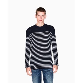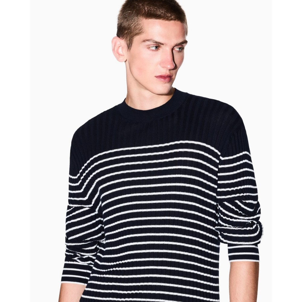 Armani Exchange men's crew neck sweater, striped pattern, slim fit.