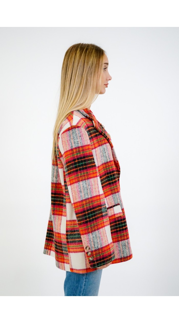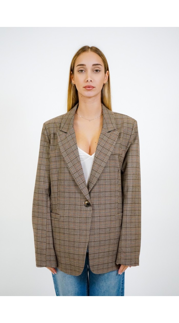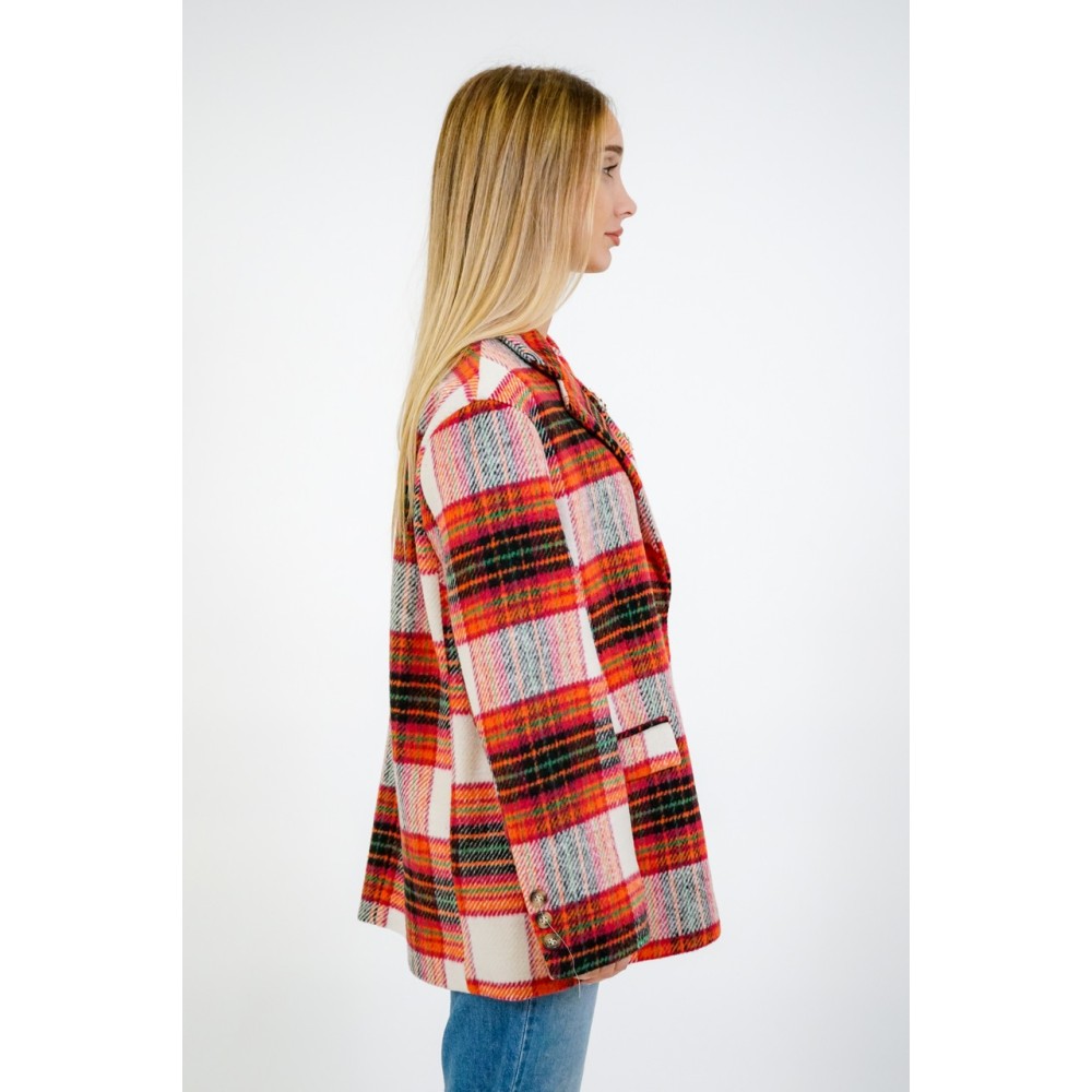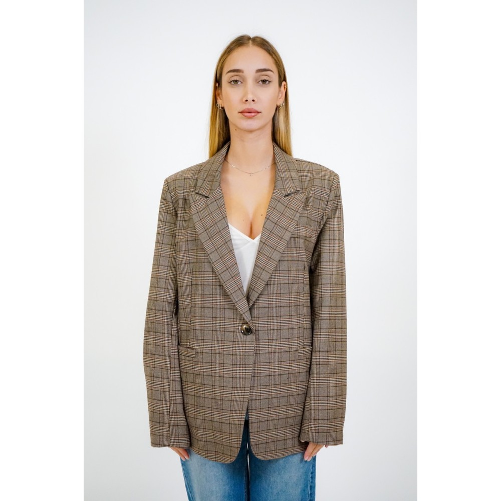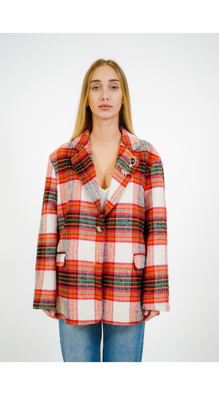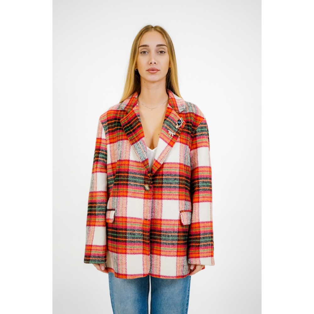 Dixie women's wool jacket, checkered pattern, oversized fit, pin detail.
