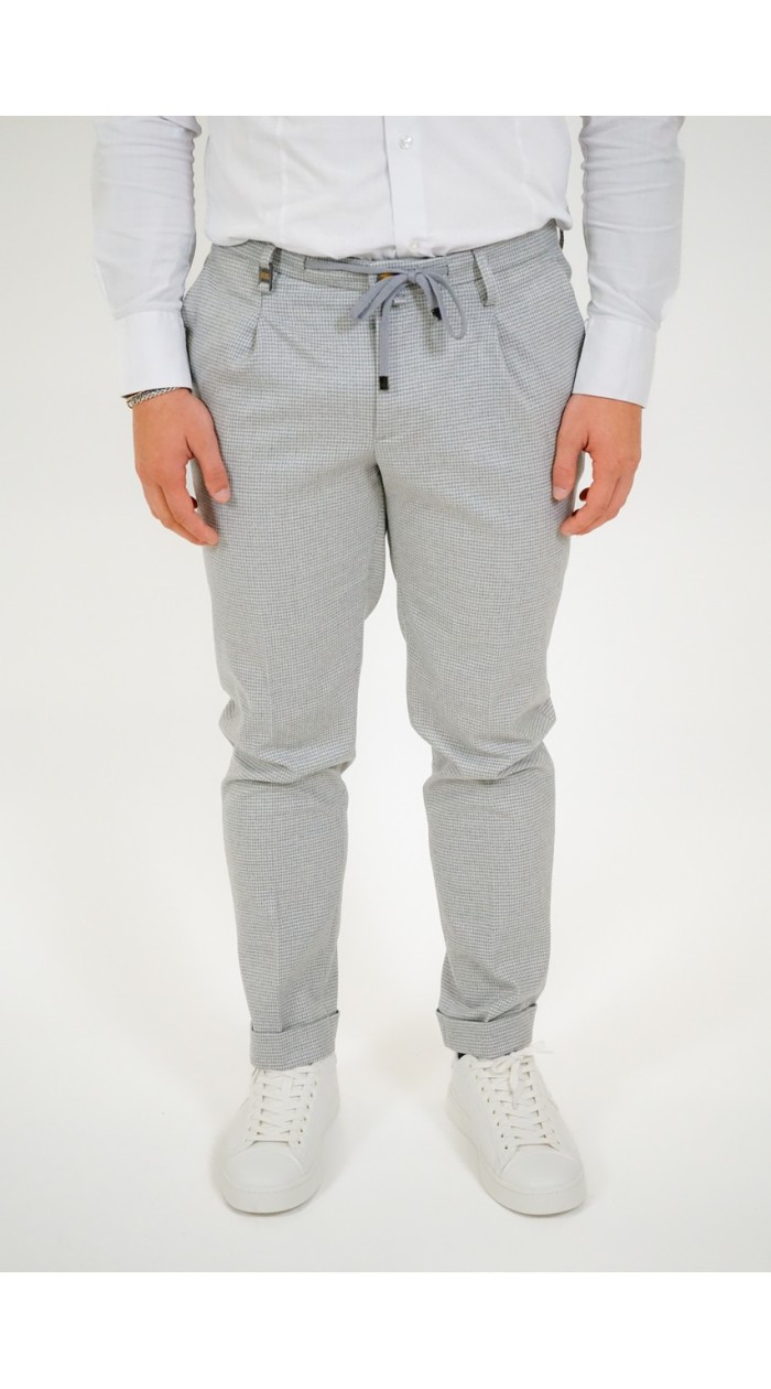 Barbati men's patterned sweatpants with zip, button, and drawstring closure. Slim fit. The model is wearing size 50.