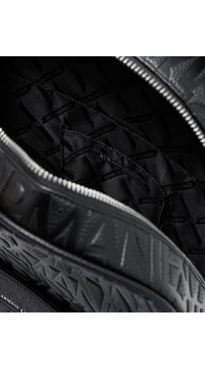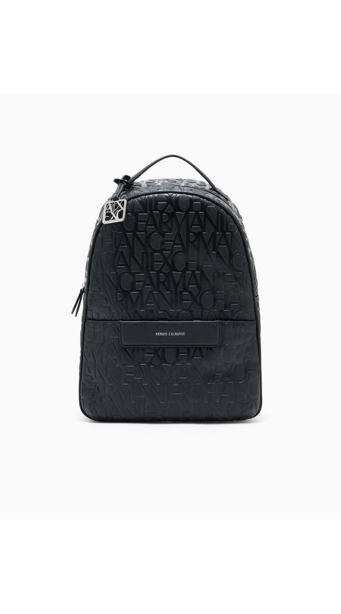 Backpack made from durable material, featuring a bold all-over embossed logo pattern that makes it a real statement piece.