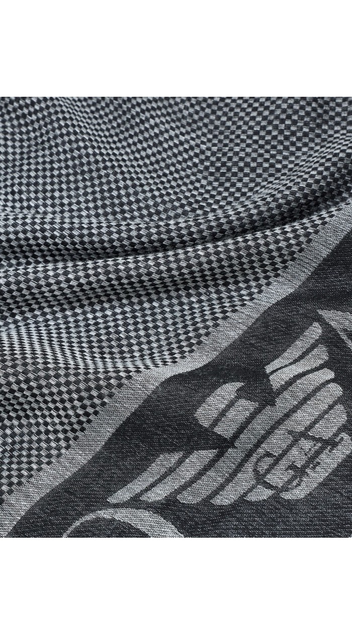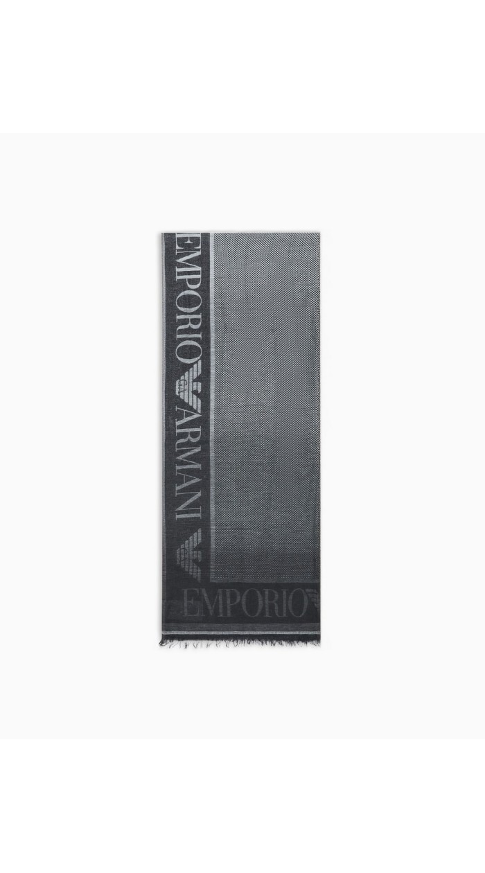 Stole in viscose and modal blend fabric with a micro check dégradé pattern that adds a touch of sophistication. The iconic Emporio Armani logo runs along the edges of the accessory, completing it with distinction.