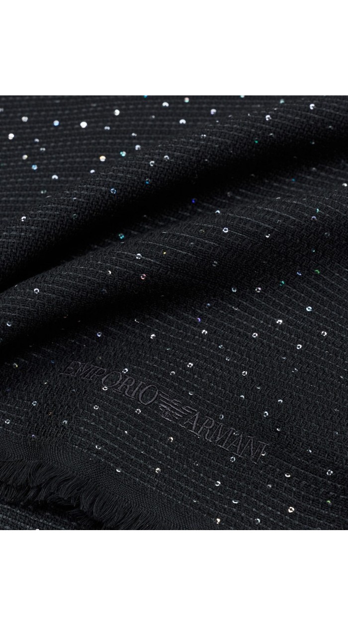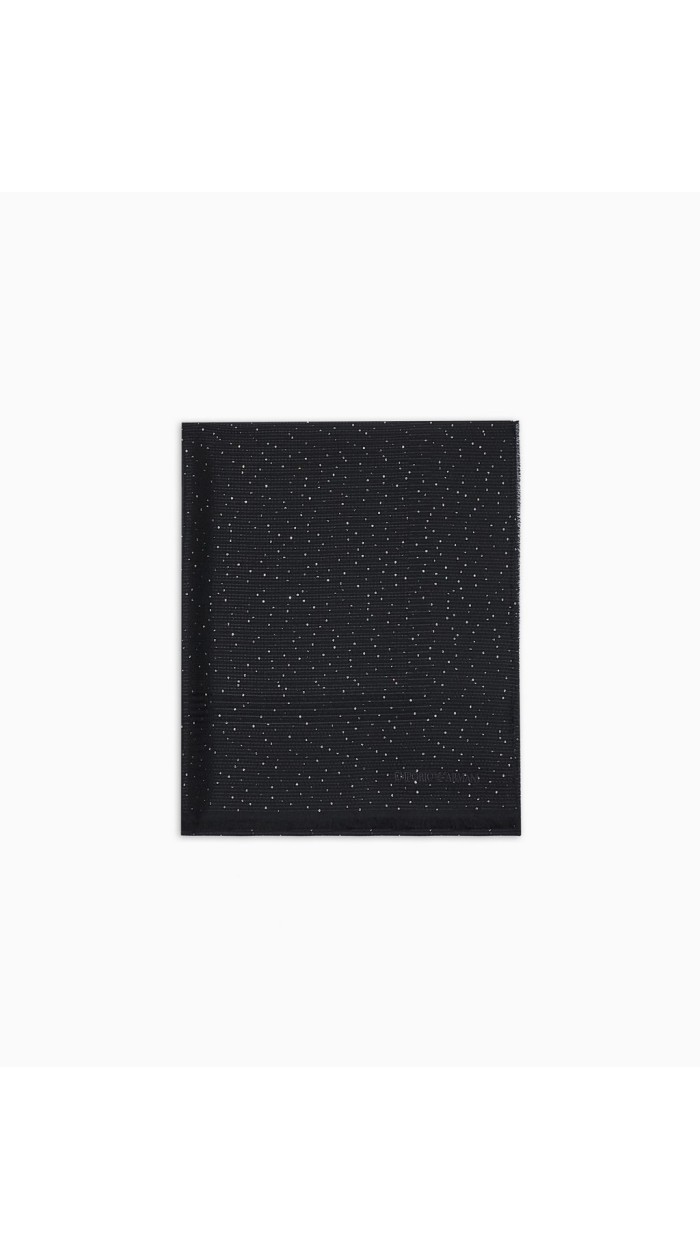 Stola made of wool blend, embellished with micro sequins inside the weave that add a touch of light. Embroidered logo in tone on the bottom.