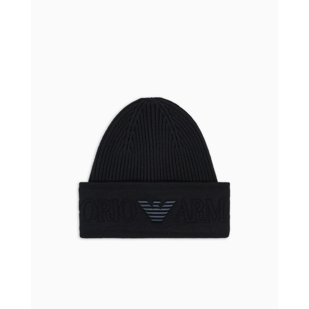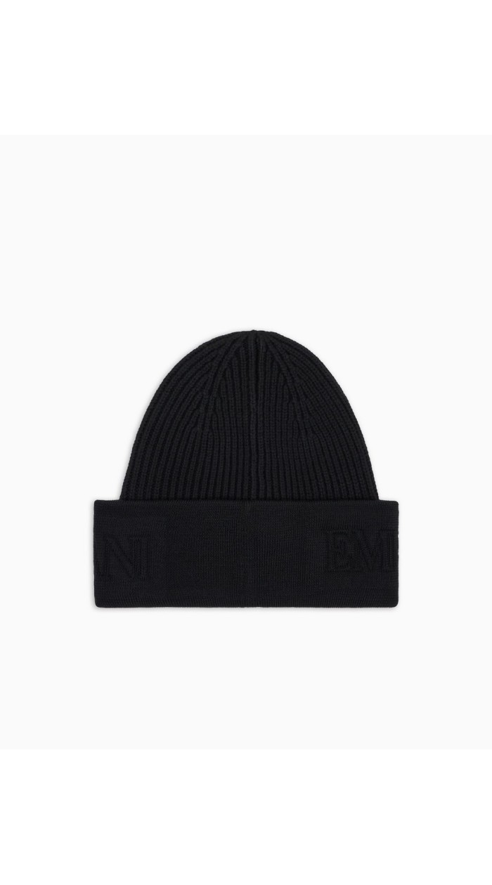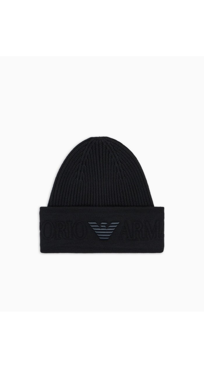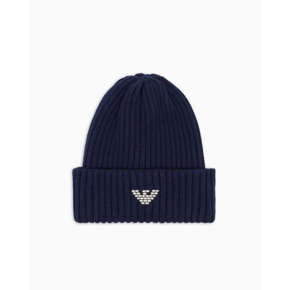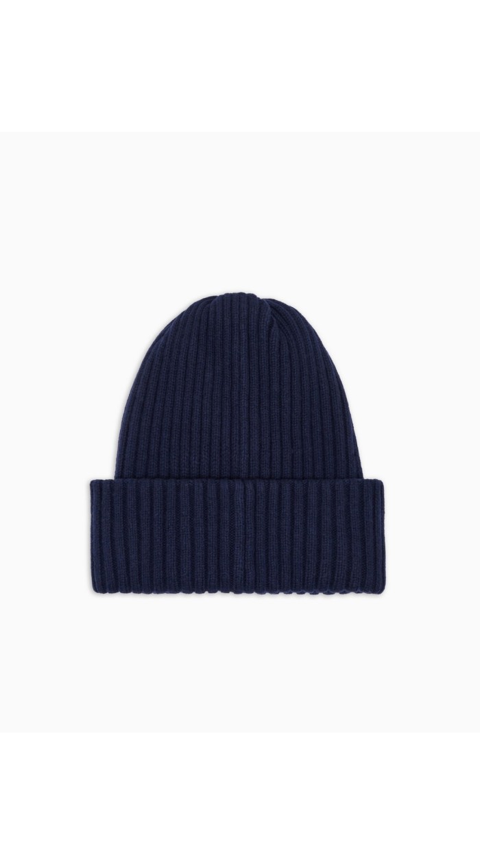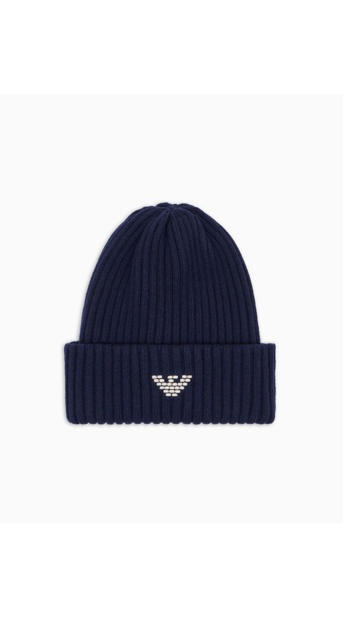Beanie made from a virgin wool blend with a ribbed knit and turn-up featuring embroidery with the iconic eagle.
