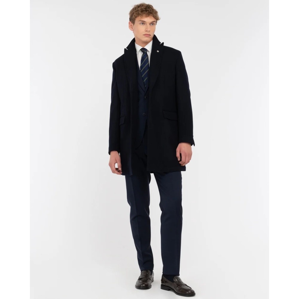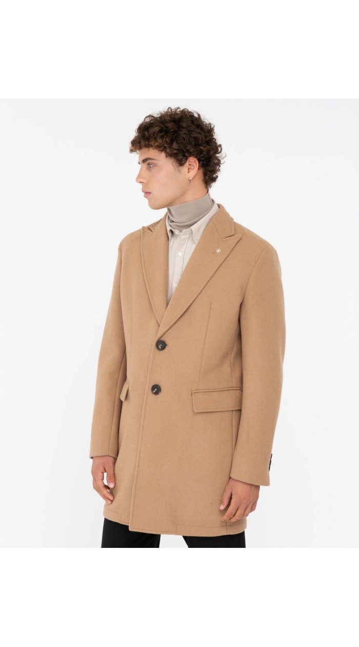 Nuvola coat, unlined, two-button closure, peak lapel, two front flap pockets, four buttons at the cuffs, topstitched trim. Wool blend fabric.
