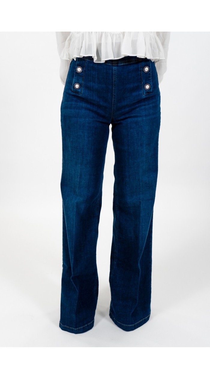 Twinset women's wide-leg jeans with a button closure at the front and stretch fabric. The model is wearing size 40.
