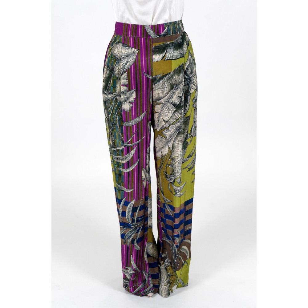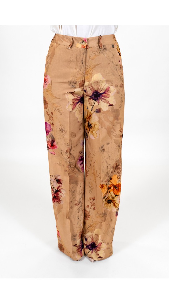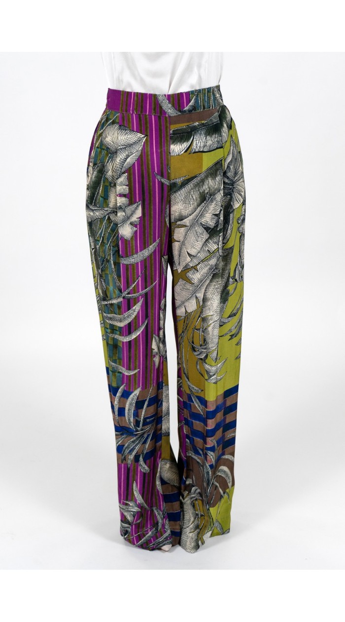 Discover a pair of palazzo pants that celebrate femininity with their loose, lightweight design. The botanical print adds a unique touch and character, while the high waist flatters the silhouette and offers versatile styling options.