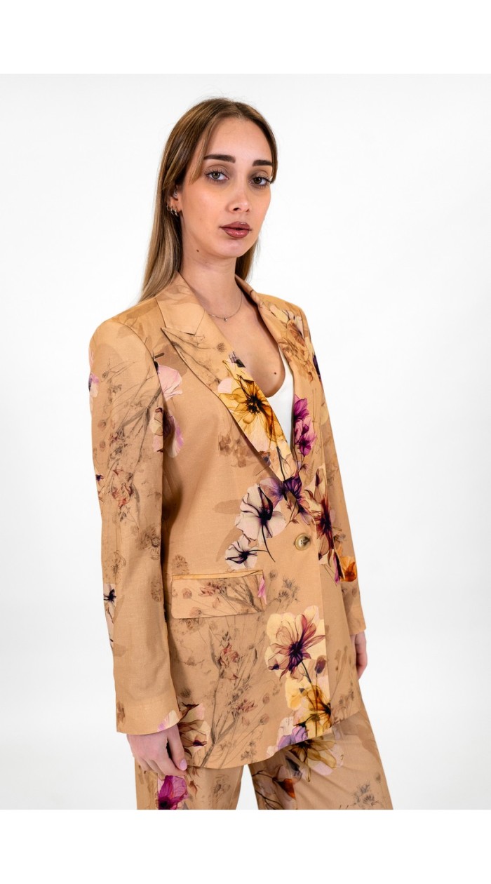 Perfect for adding a sophisticated and unique touch to your everyday outfits, this floral-print blazer stands out for its classic cut with a lapel collar and single-breasted closure.