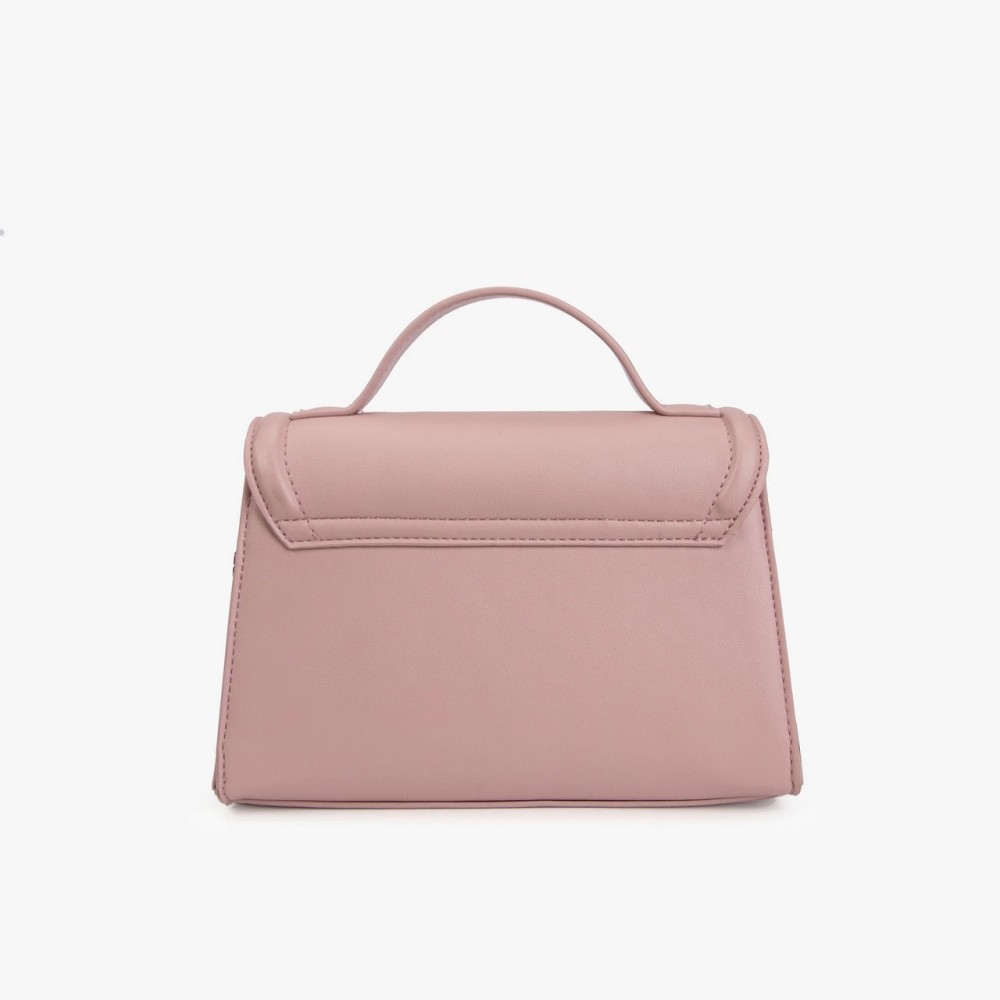 Smooth faux leather mini bag, snap closure, small faux leather handle, adjustable faux leather shoulder strap with snap hooks, two inside pockets one of which is zippered .VIVIENNE D logo gold finish. Lining 100% polyester
