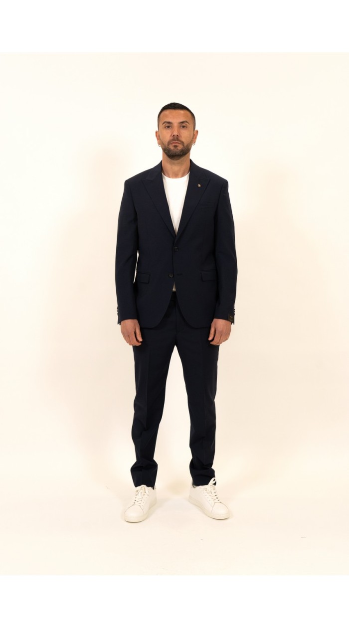 Manuel Ritz solid-coloured men's suit. Jacket: single breasted jacket, solid colour, spread collar, regular fit. Trousers: plain trousers, solid colour, button and zip fly.