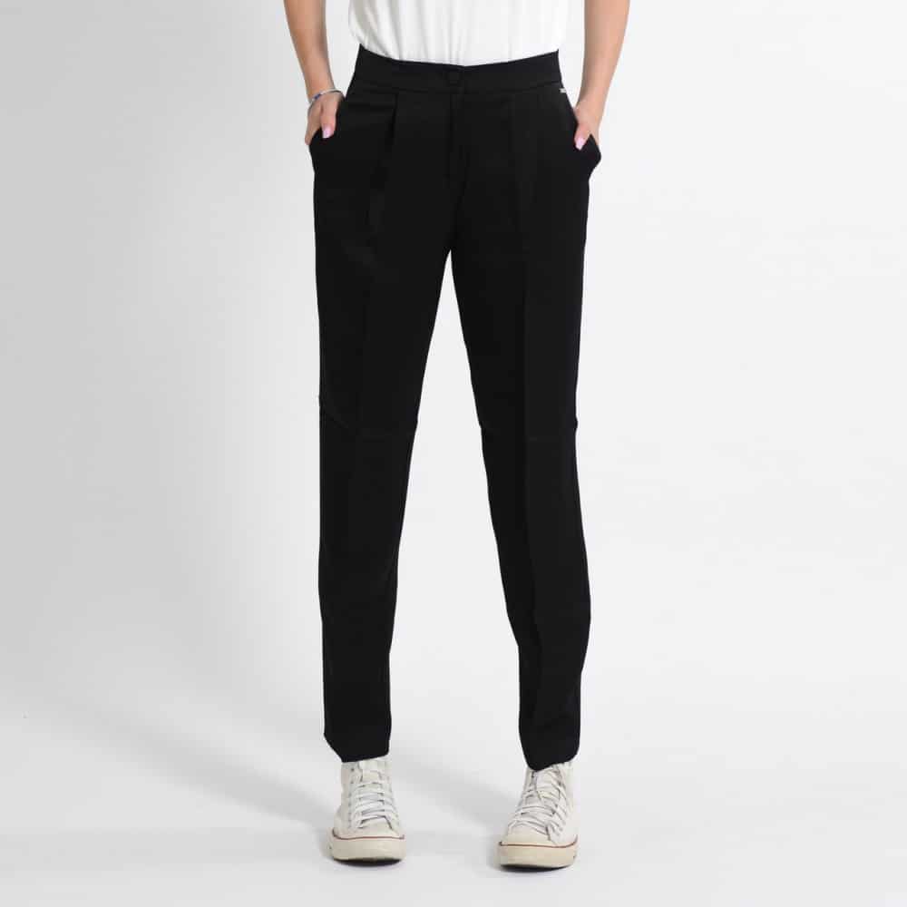 Armani exchange women's pants with satin pence. Flush pocket, front zipper closure.
