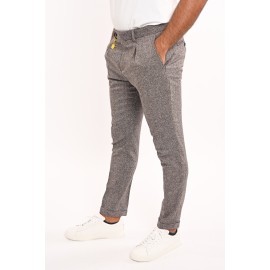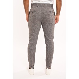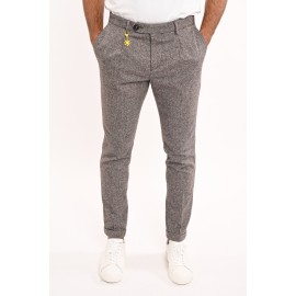 Manuel ritz men's wool pants with darts, welt pocket, clip and zipper closure. The model is wearing size 48.