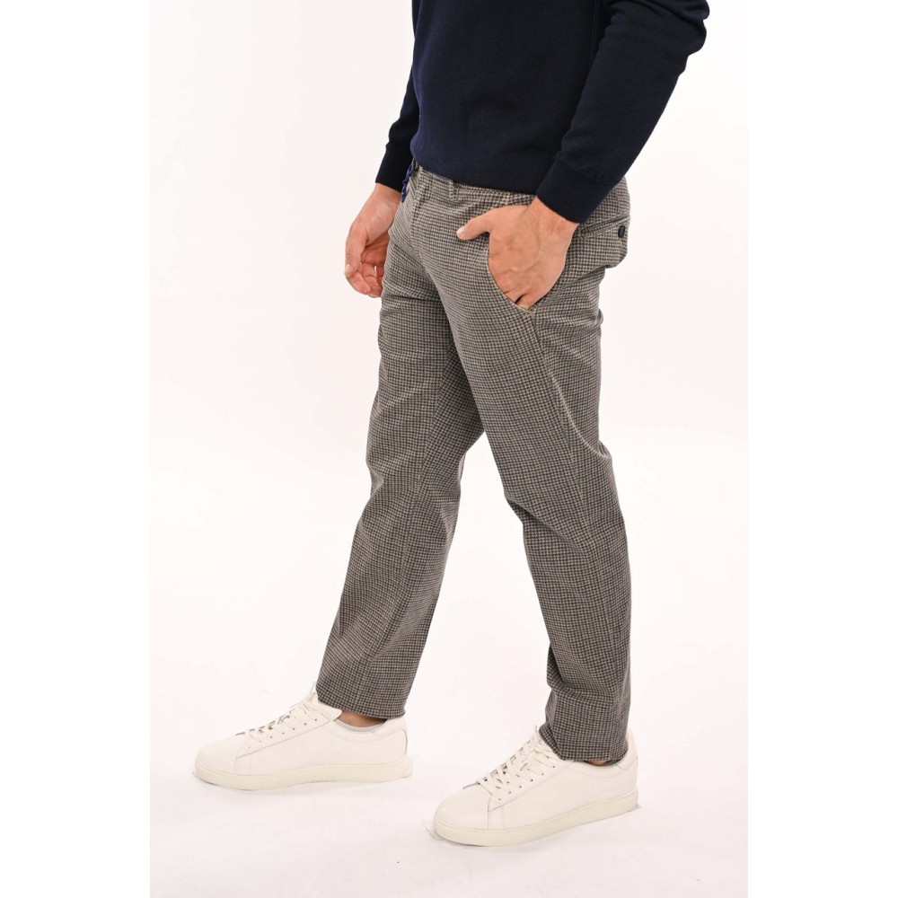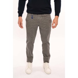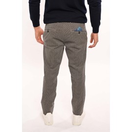 Manuel Ritz men's patterned pants, welt pocket, zipper and clip closure, removable clutch at back, slim fit. Model is wearing size 48.