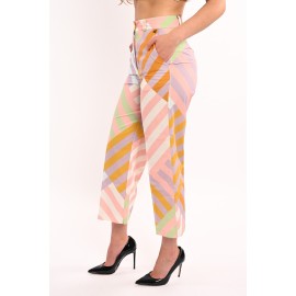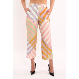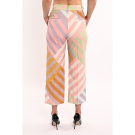 Dixie patterned women's trousers, capri model, clip and zip fastening, welt pocket.