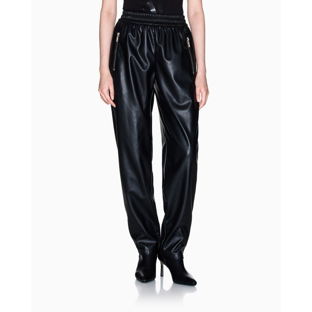 Trousers made from a coated-effect fabric that offers a soft-touch finish and a contemporary look. The wide silhouette and elasticated waistband ensure high comfort and a relaxed fit, ideal for a look that combines practicality and style. Functional details, such as decorative zips, add a touch of modernity and dynamism to the garment.