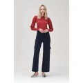 White Wise women's knit cargo pants, solid color, palazzo style, elastic waistband, comfortable fit.