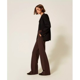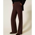 Double crepe pants in viscose blend with invisible side zipper, French pockets, pressed crease, straight leg.