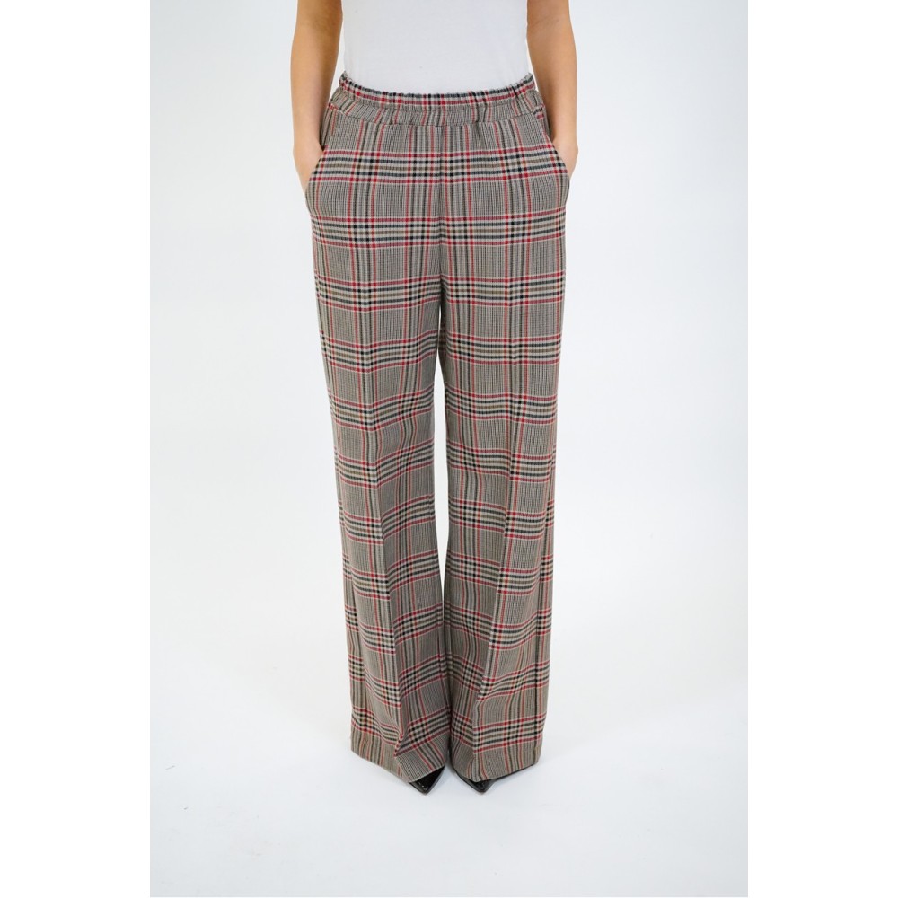 Maryley women's palazzo pants, checkered pattern, elastic waistband. The model is wearing size S.