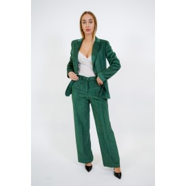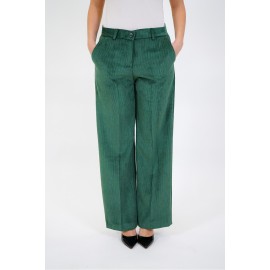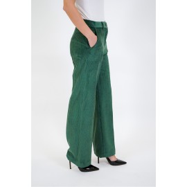 Women's velvet palazzo pants, high waist, slash pockets, zip and button closure, regular fit. The model is wearing a size 40.