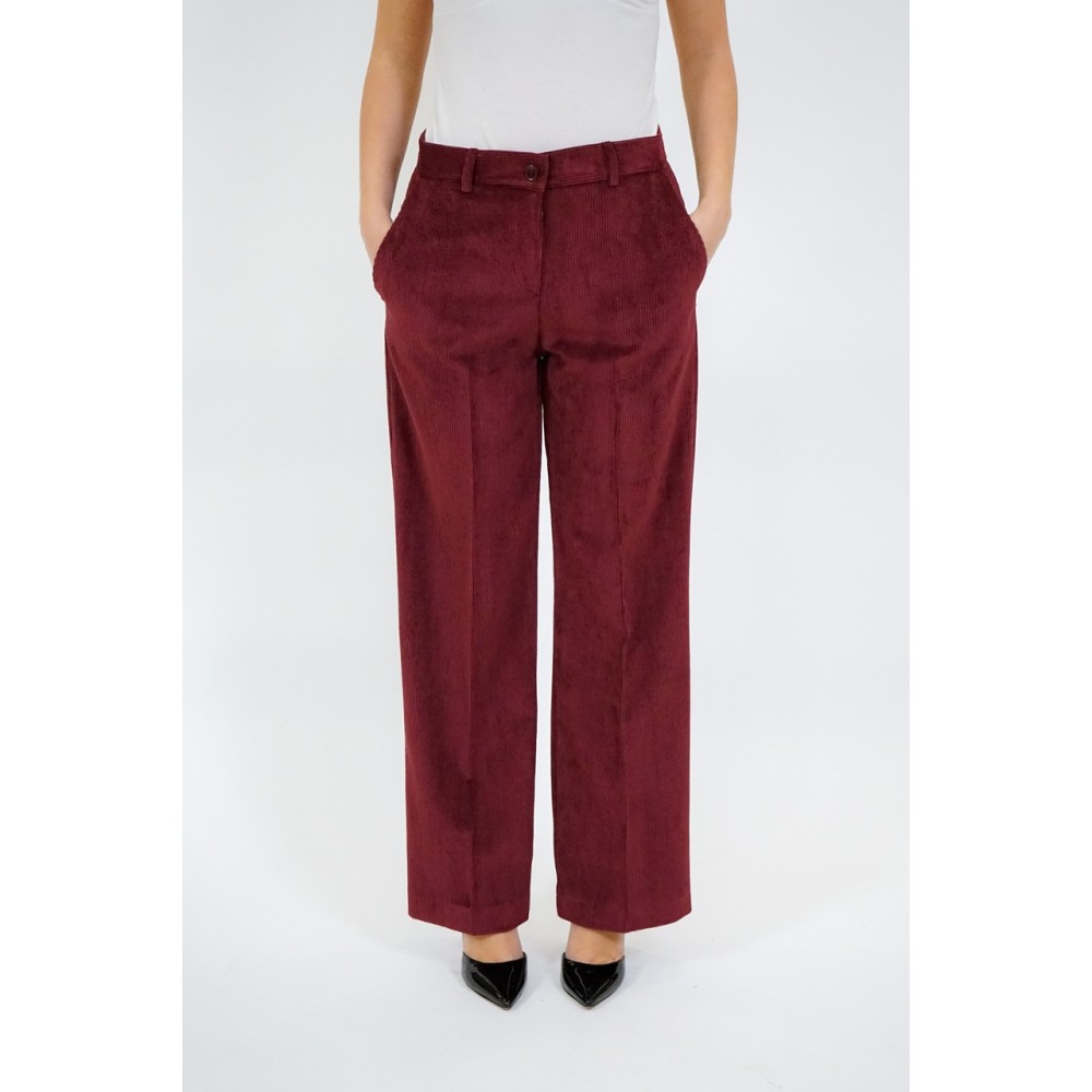 Women's velvet palazzo pants, high waist, slash pockets, zip and button closure, regular fit. The model is wearing a size 40.