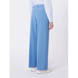 Palazzo pants made from pure stretch wool canvas. Soft-fitting style with straight legs and pressed creases, French pockets on the sides, and welt pockets with buttons on the back.