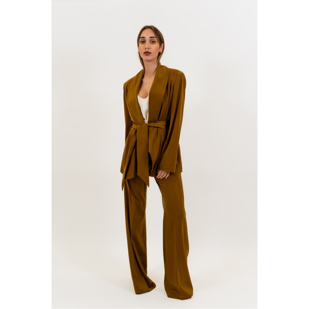 These high-waisted palazzo pants in satin fabric combine softness and elegance for refined comfort. Perfect for those seeking a sophisticated style without sacrificing comfort, they easily adapt to a variety of occasions, flattering the silhouette with a fluid, figure-hugging fit.