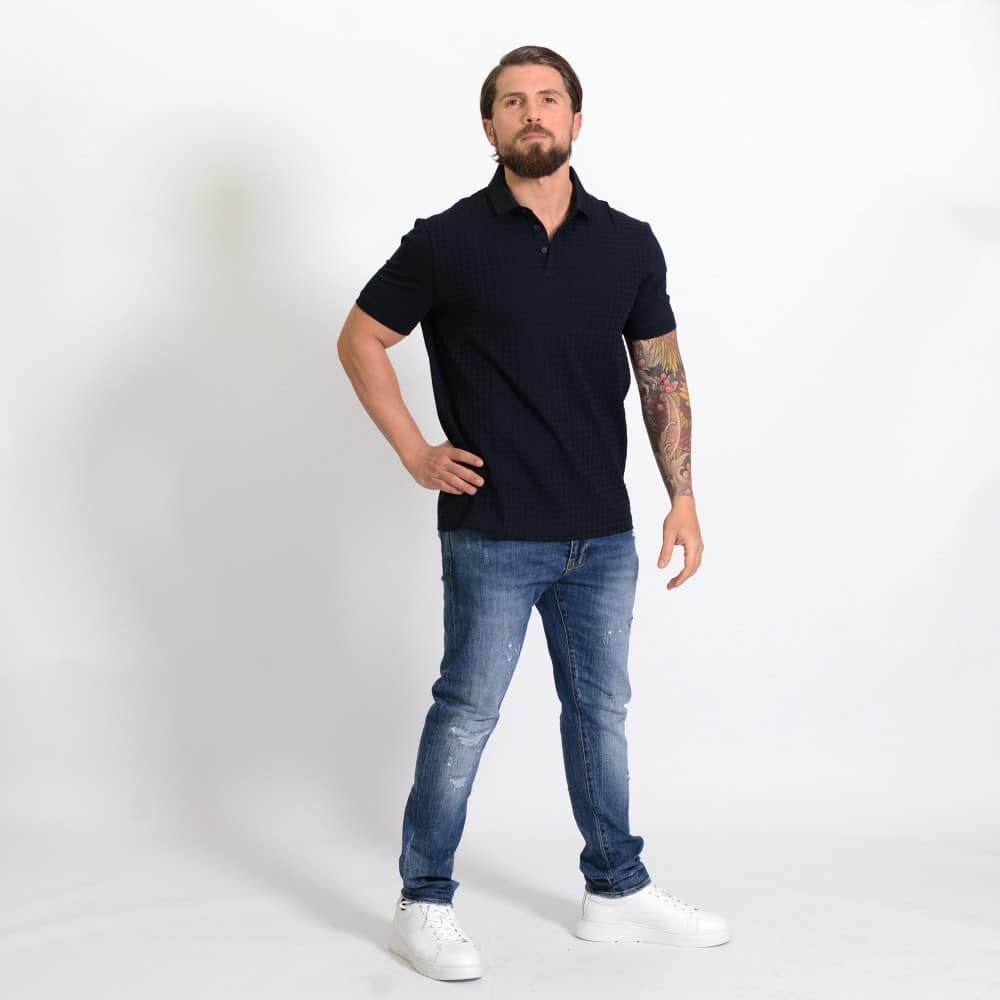 Armani exchange men's geometric patterned polo shirt dyed on dyed cotton.