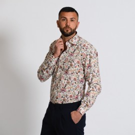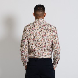 Men's Lemon Grove Edition cotton shirt with flowers. Long sleeve stretch fabric.