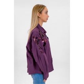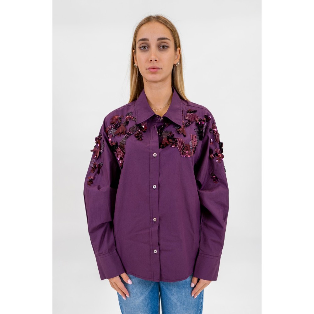 Dixie women's shirt, button closure, sequin detail on the front and sleeves, regular fit.