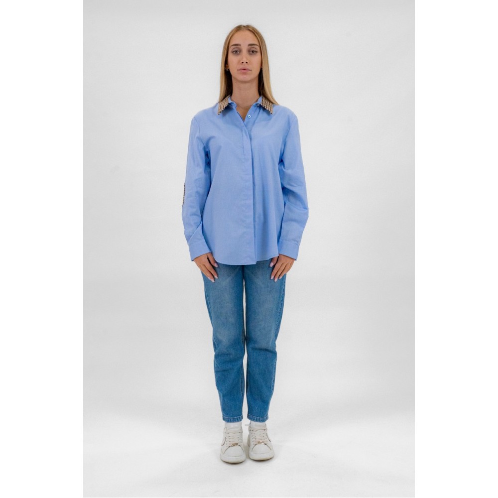 Dixie women's shirt, long sleeves, checked detail on the collar and behind the elbows, regular fit. The model is wearing size S.