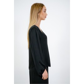 Haveone women's blouse with pointed neckline, silk effect, regular fit, long sleeves. The model is wearing size S.