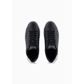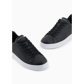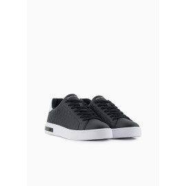 Armani exchange men's trainers logoed, rubber sole, lace-up closure, round toe, lined interior, coated fabric.