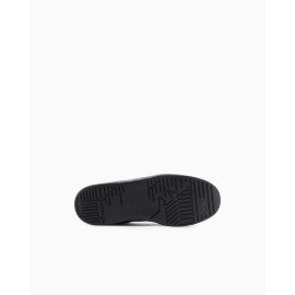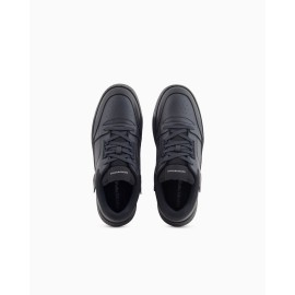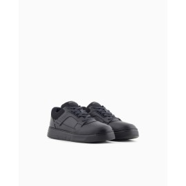 Calfskin leather trainers with mesh details. The Emporio Armani logo is screen-printed on the front of the tongue and on the back tab. Trainers with clean lines and a comfortable fit: a minimalist design that echoes the style of 1990s basketball shoes.