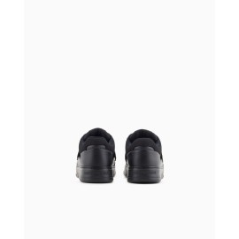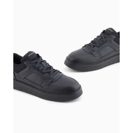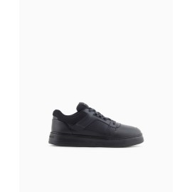 Calfskin leather trainers with mesh details. The Emporio Armani logo is screen-printed on the front of the tongue and on the back tab. Trainers with clean lines and a comfortable fit: a minimalist design that echoes the style of 1990s basketball shoes.