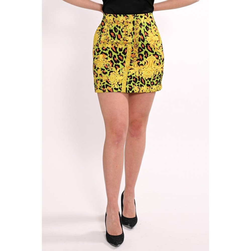 Versace patterned Vicolo miniskirt, high waist, side pockets, back zipper closure.