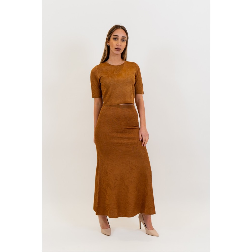 Twinset long embroidered women's skirt, solid color, slim fit. The model is wearing size XS