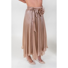 Dixie pleated laminated women's skirt, elastic waistband, sash with brooch, regular fit.