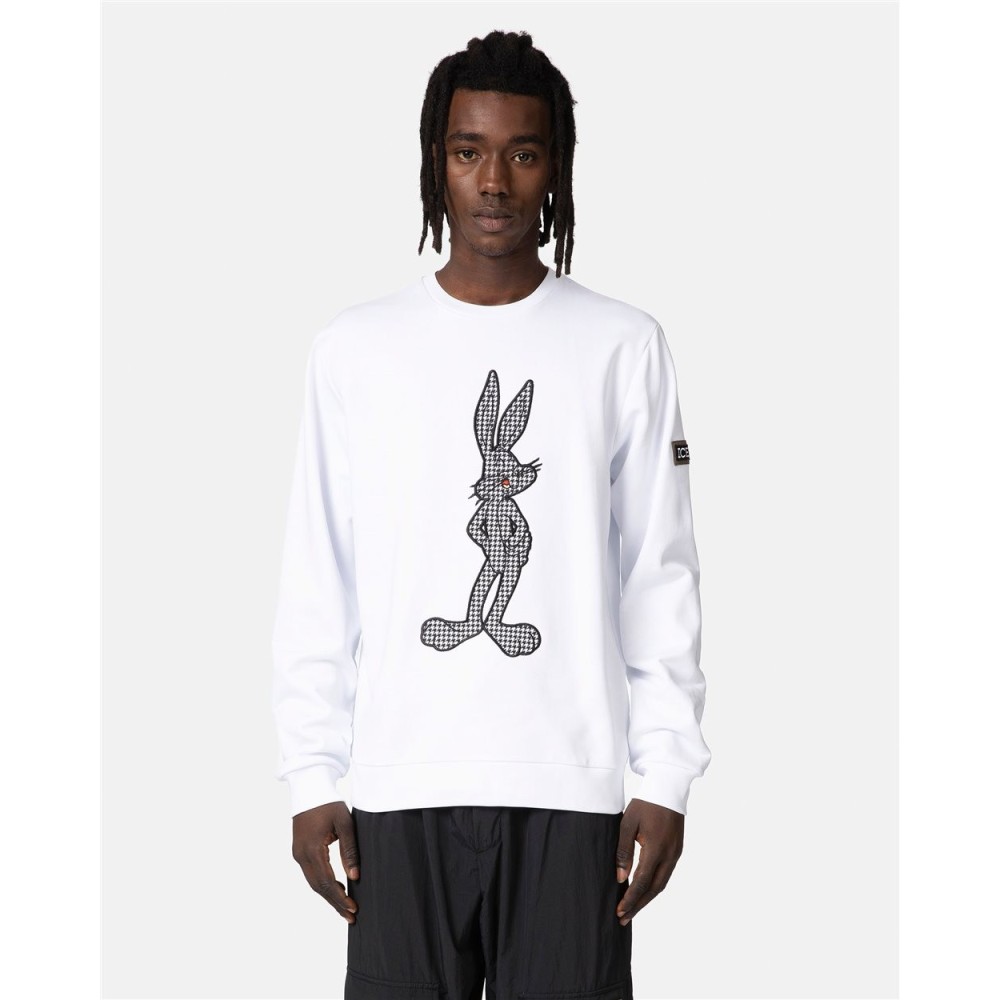 Men's crewneck sweatshirt in pure cotton fabric. The garment features Bugs Bunny graphics made with embroidery technique, houndstooth pattern on the front and Iceberg logo patch embroidered with contrasting color on the left sleeve.