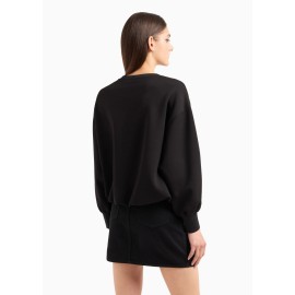 Women's Armani Exchange round-neck sweatshirt, logoed with rhinestones, balloon sleeve with cuff, crop model with elastic. Over fit.