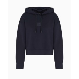Armani Exchange women's cropped, hooded sweatshirt, logo on front dye. Over fit.