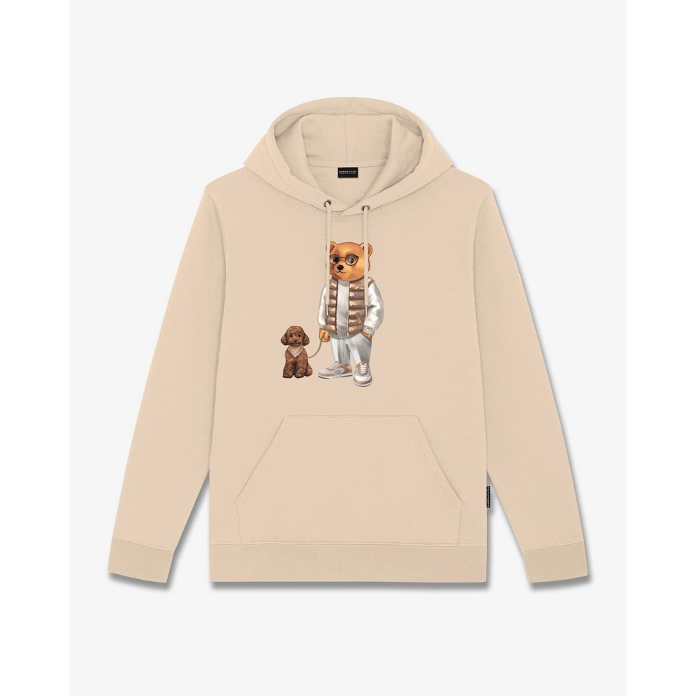 Our hoodie will be your new favourite fashion item. It features long sleeves, a kangaroo pocket to keep your hands warm, a drawstring hood and 1x1 ribbing on the sleeve cuffs and hem. The garment is decorated with the iconic FW25 Filou print in the centre of the front. The inside of the garment is made of brushed cotton for maximum softness against the skin.