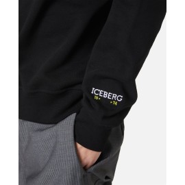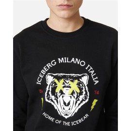 Classic regular fit crew neck sweatshirt in black diagonal cotton fleece. The design features a bear print on the front, adding an ironic and iconic touch to the urban aesthetic of the garment. Finished with ribbed collar, cuffs, and hem, it is perfect for a casual style with a bold character.