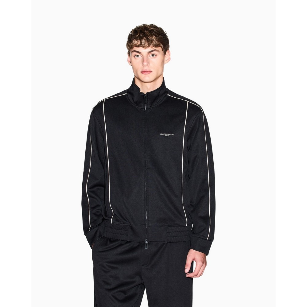 Zip-up sweatshirt made from smooth, comfortable cotton, chosen for its softness and versatility in every season. Its texture, pleasant to the touch, guarantees a relaxed but refined fit and remarkable freedom of movement. This garment is designed for a casual and functional look, ideal for leisure, sports, or everyday comfort. The essential and well-defined details, such as the contrasting side bands, emphasize its dynamic character and ability to blend harmoniously into a modern wardrobe, offering a touch of practicality and style.