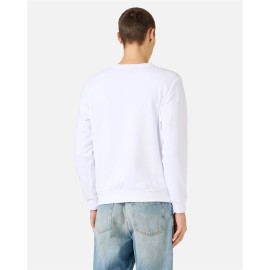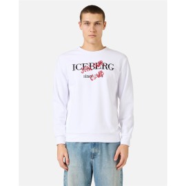 Slim-fit optical white crew neck sweatshirt in GOTS-certified sustainable cotton blend fleece, designed to offer natural comfort and a slim fit that flatters the silhouette. The print combined with the institutional logo embroidery on the center front adds a distinctive graphic touch, maintaining a clean and contemporary aesthetic. An essential model that interprets the Iceberg style with minimalist elegance and attention to detail.