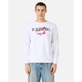 Slim-fit optical white crew neck sweatshirt in GOTS-certified sustainable cotton blend fleece, designed to offer natural comfort and a slim fit that flatters the silhouette. The print combined with the institutional logo embroidery on the center front adds a distinctive graphic touch, maintaining a clean and contemporary aesthetic. An essential model that interprets the Iceberg style with minimalist elegance and attention to detail.