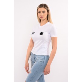 Chiara Ferragni cotton T-shirt with Eye Star embroidery, short sleeve, slim fit.