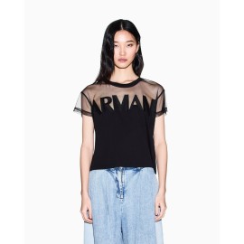 Slim fit T-shirt with versatile appeal and a metropolitan spirit, symbolizing energy and freedom. The T-shirt has short sleeves, a crew neck, and lettering on the front and back.