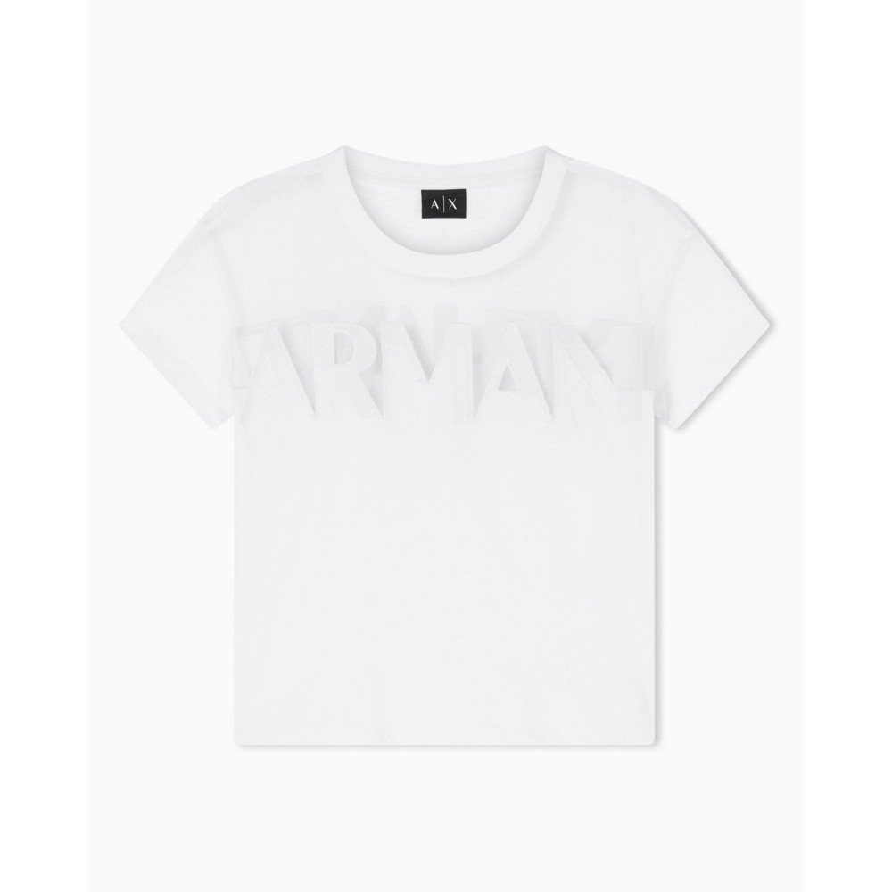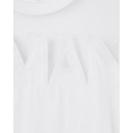 Slim fit T-shirt with versatile appeal and a metropolitan spirit, symbolizing energy and freedom. The T-shirt has short sleeves, a crew neck, and lettering on the front and back.