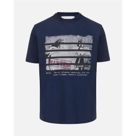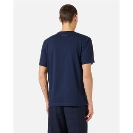 Blue short-sleeved T-shirt in sustainable cotton jersey, featuring a regular fit that ensures comfort and everyday versatility. The natural fabric offers freshness and softness to the touch, while the Looney Tunes cartoon prints on the front infuse the garment with playful and nostalgic energy. On the left sleeve, the logo label adds a distinctive detail that enhances the design with a touch of contemporary personality.