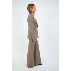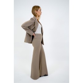 Elena Casali women's suit. Jacket: single-breasted, regular fit, peaked lapels, front welt pockets. Pants: flared, high waist, zip and button closure.