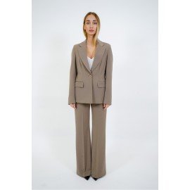 Elena Casali women's suit. Jacket: single-breasted, regular fit, peaked lapels, front welt pockets. Pants: flared, high waist, zip and button closure.